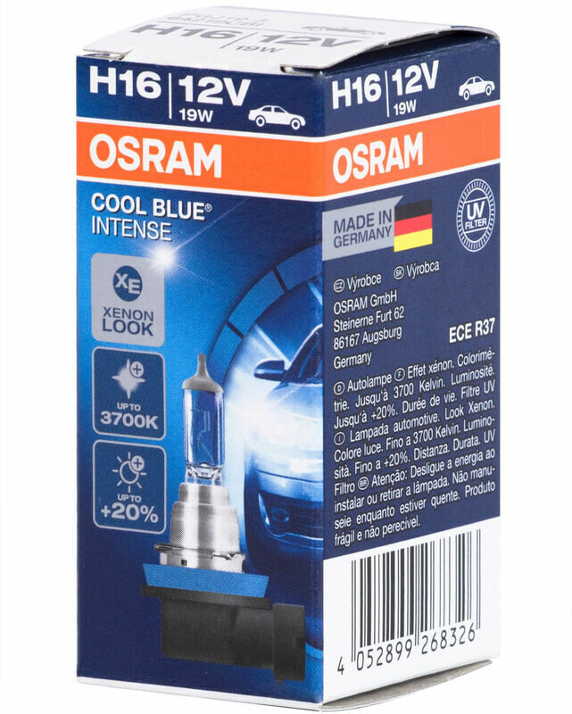 Лампа автомобильная галогенная Osram COOL BLUE INTENSE, H16, 12V, цоколь PGJ19-3, 1 шт