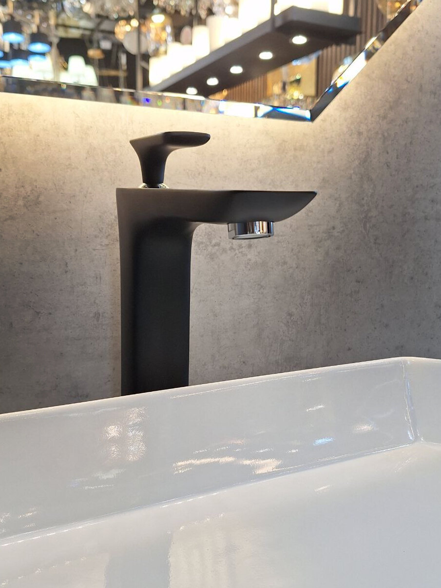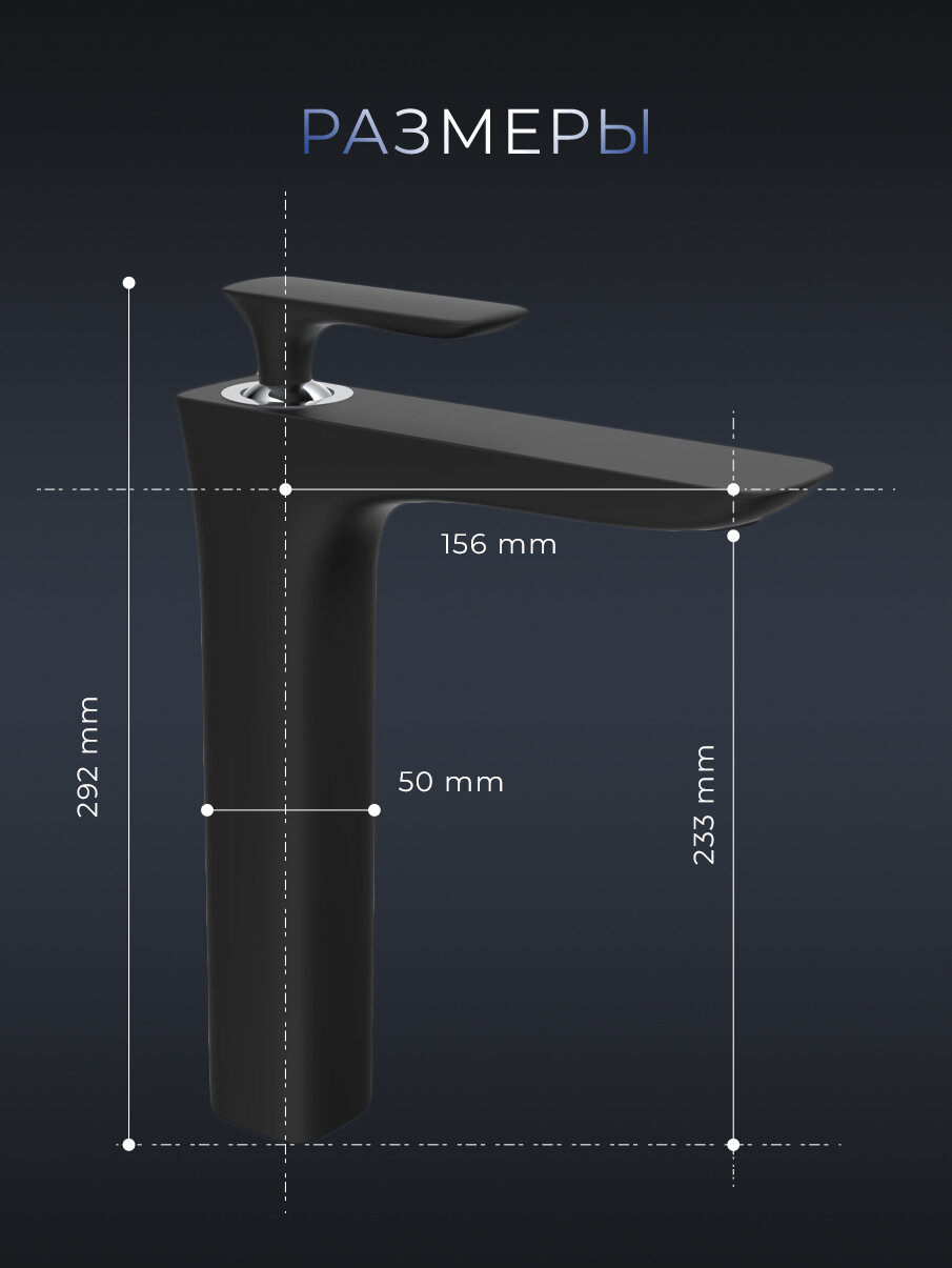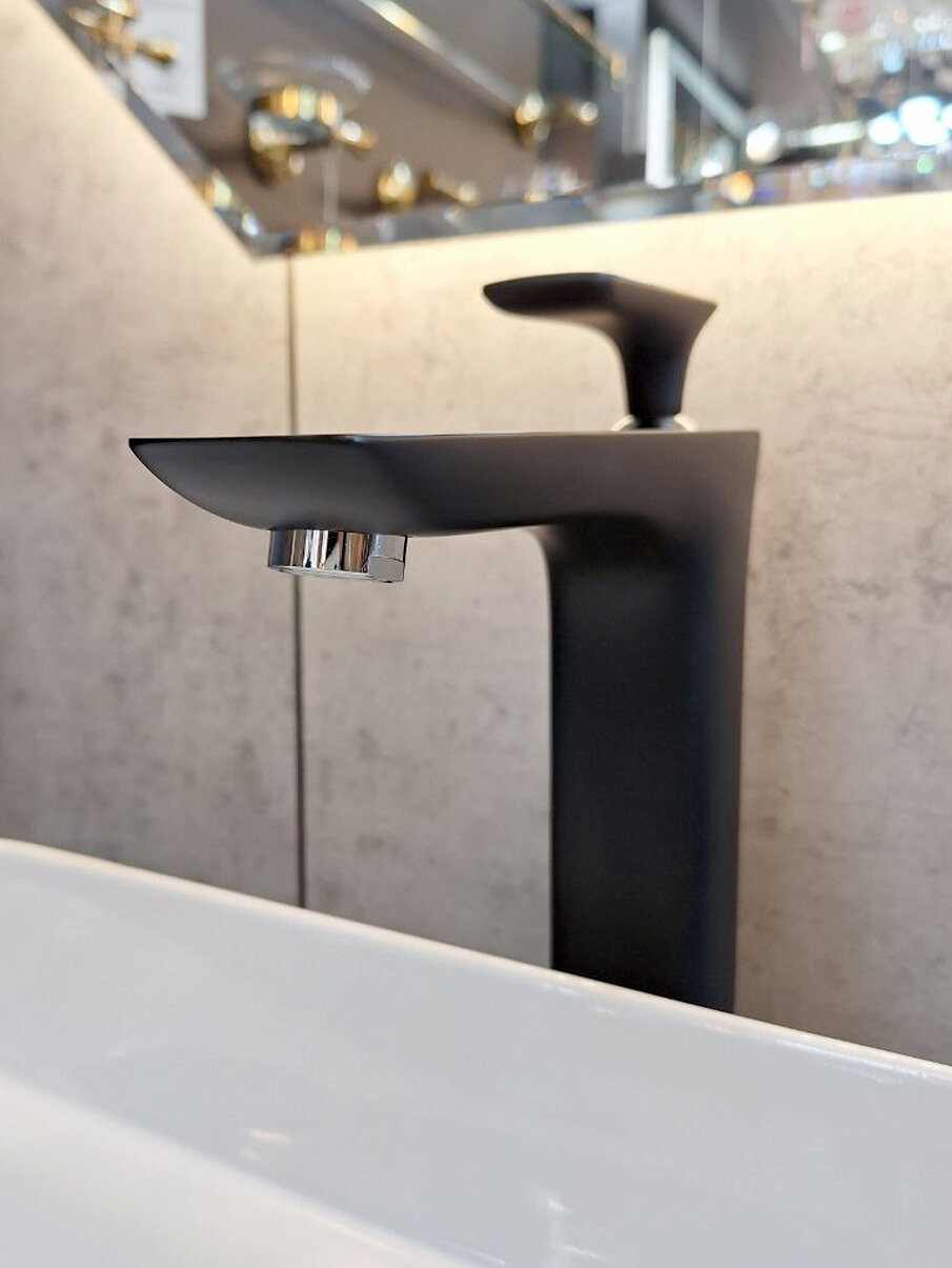 AltroBagno Смеситель высокий для накладной раковины в ванную, черный матовый