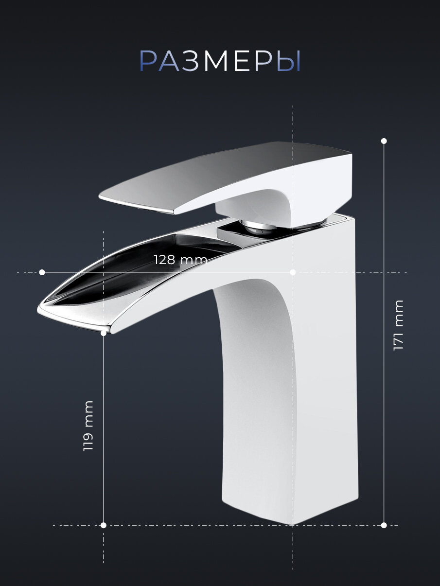 | Дополнительная информация | излив водопадного типа, гибкая подводка 60 см, керамический картридж |