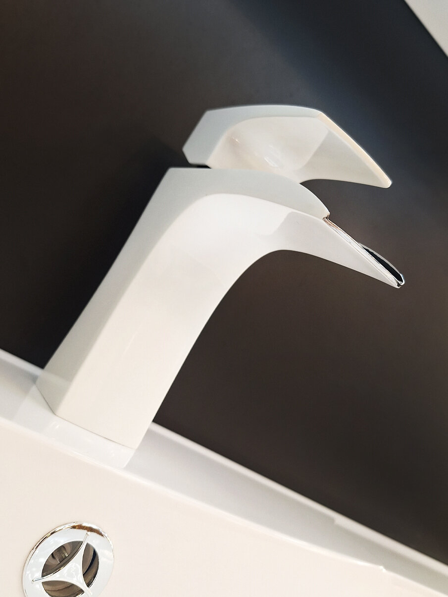 AltroBagno Смеситель для раковины в ванную с водопадным изливом, белый / хром