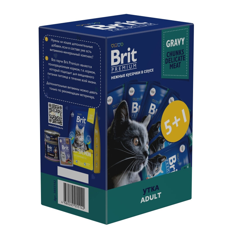 Пауч Brit Premium Промо-Набор 5+1 для взрослых кошек, утка в соусе, 85г интересное: