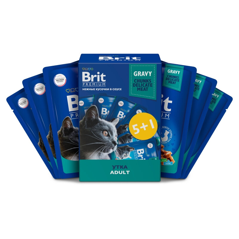 Купить Пауч Brit Premium Промо-Набор 5+1 для взрослых кошек, утка в соусе, 85г