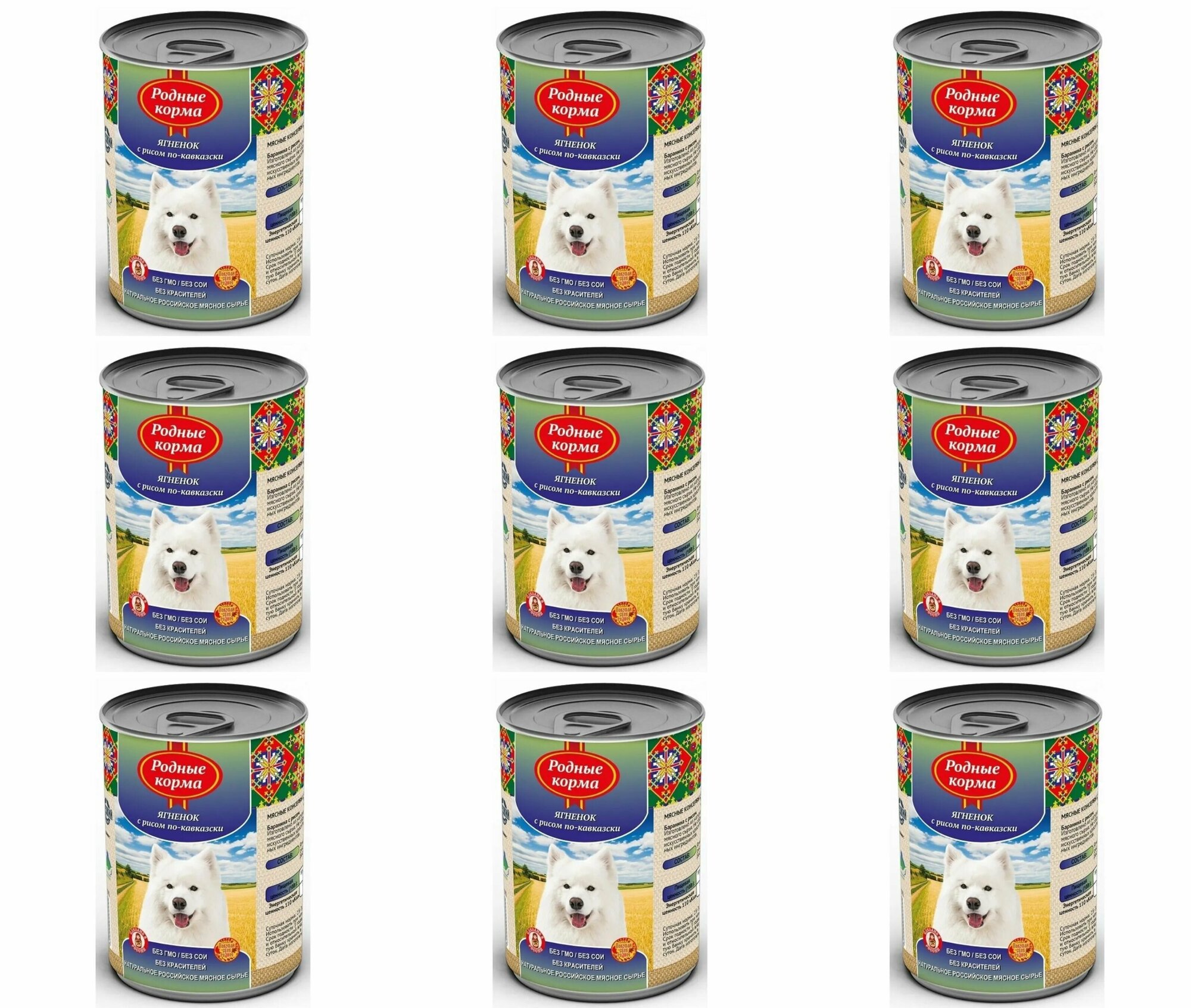 Родные корма консервы для собак ягненок с рисом по-кавказски 410 г (9 штук)