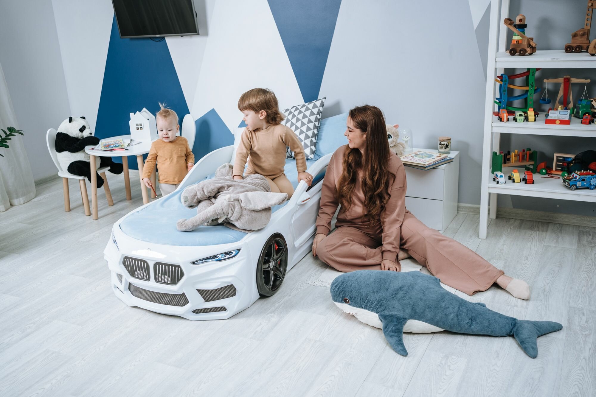 Кровать-машина детская Romeo синяя, Romack, спальное место 70х170, с подсветкой фар, ортопедическим основанием, эко матрасом