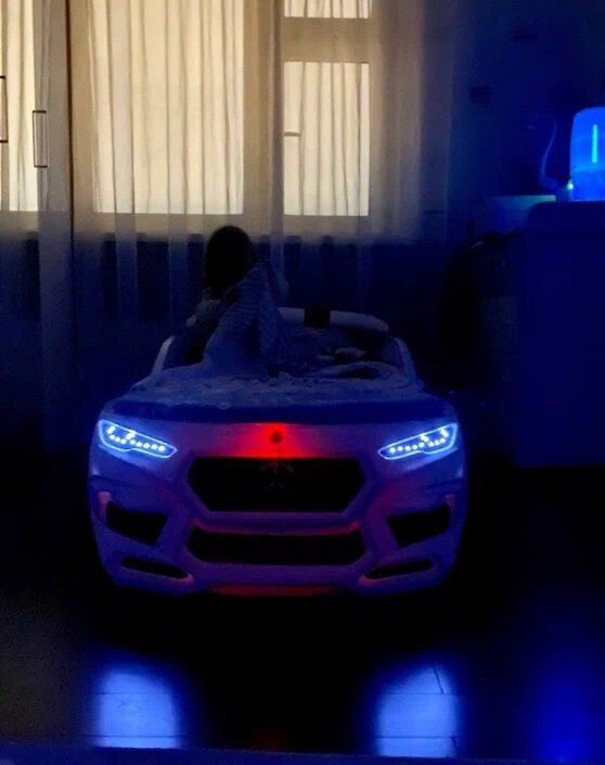 Romack mebel кровать-машина лимитированная коллекция Romeo цвет NEON с подсветкой фар и матрасом
