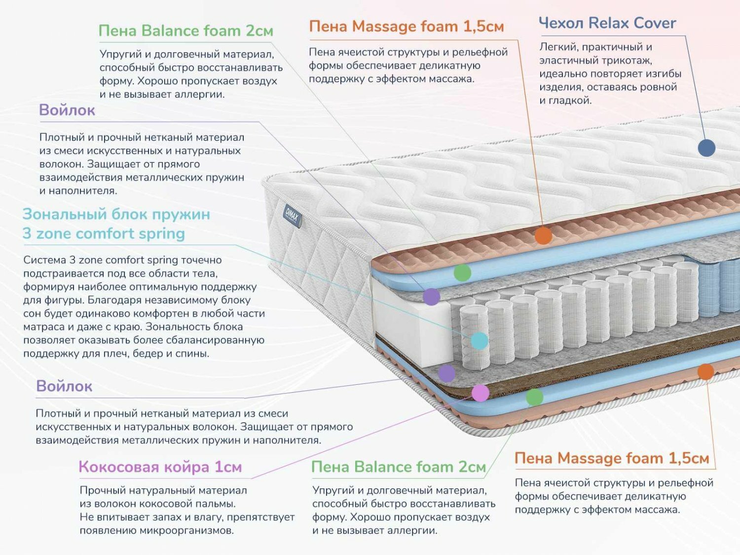Матрас Димакс Relmas Twin Cocos 3Zone 180х190