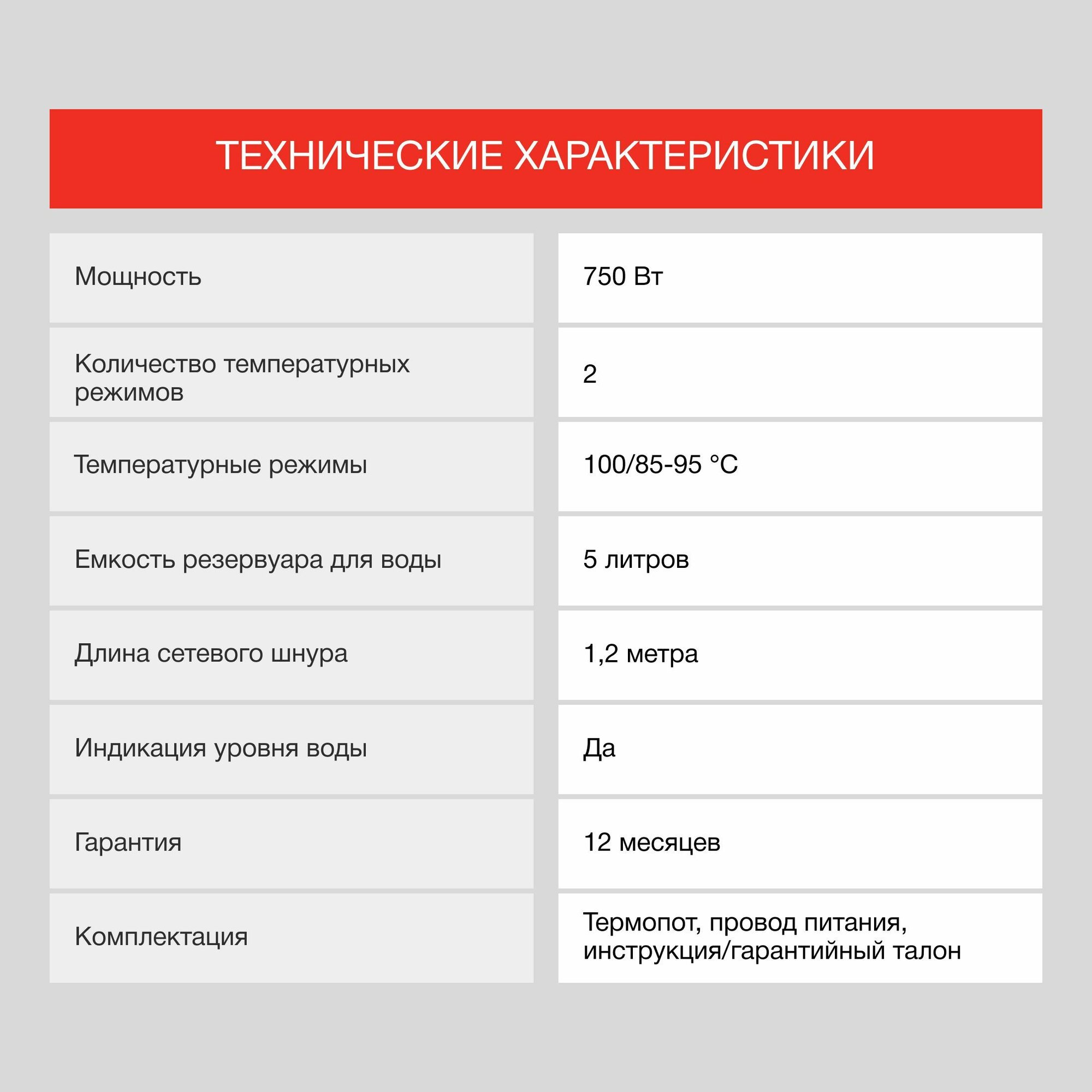 | Минусы: | Не выключить кнопкой(по крайней мере не нашли такую опцию),на самом термопоте максимум 3 литра показывает.До 5-ти литров надо просто на глаз доливать |