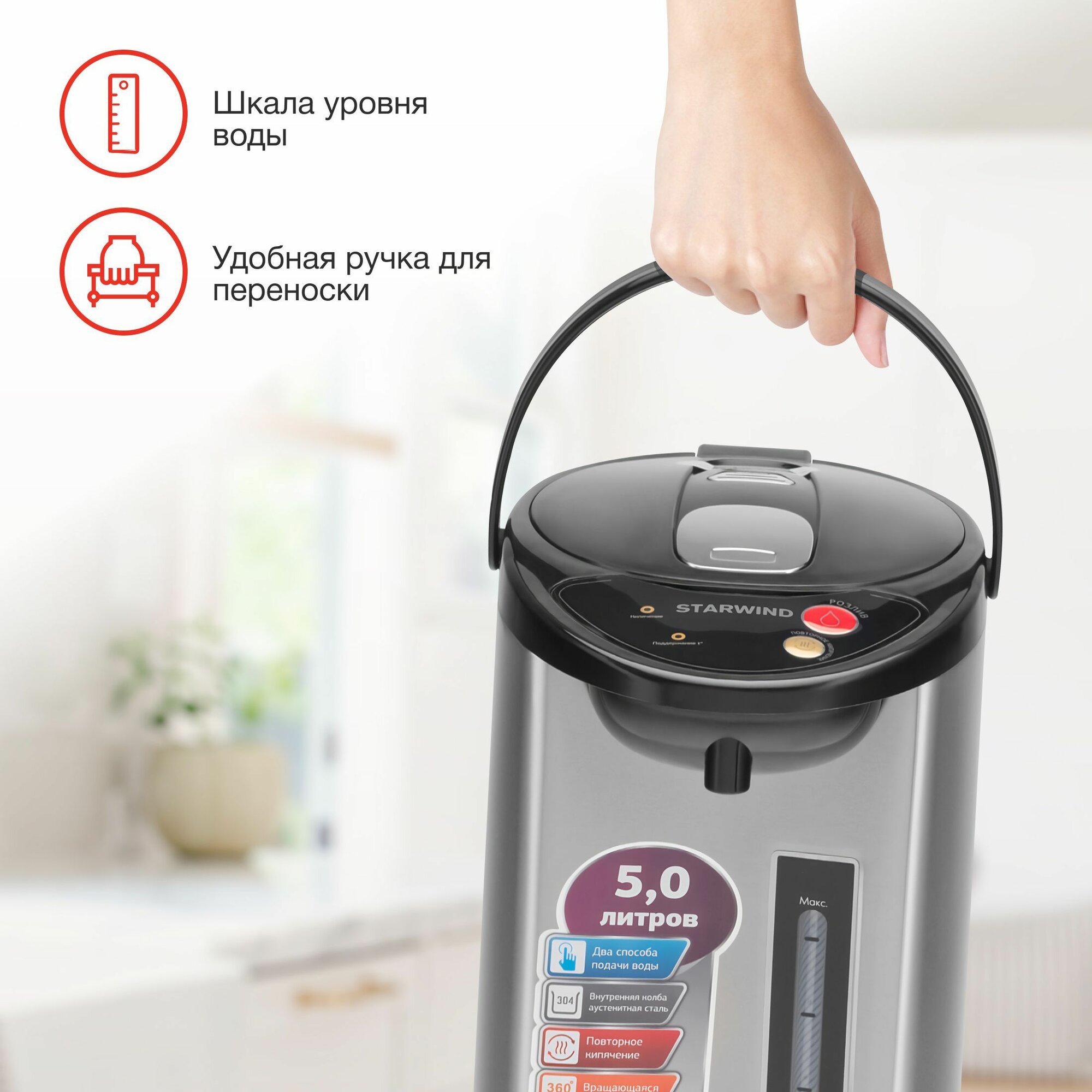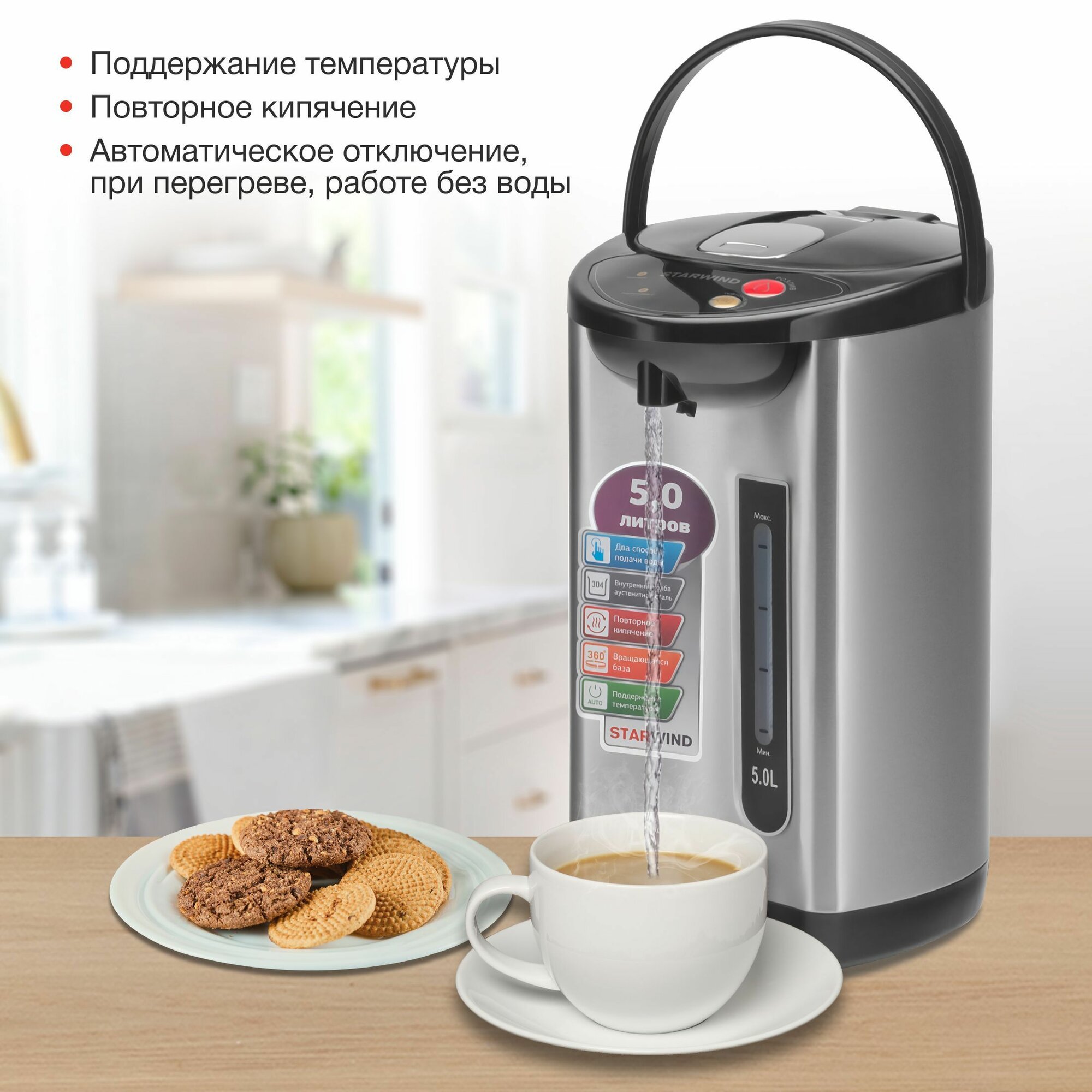 | Особенности | вращение на 360 градусов / двойные стенки / индикатор уровня воды |