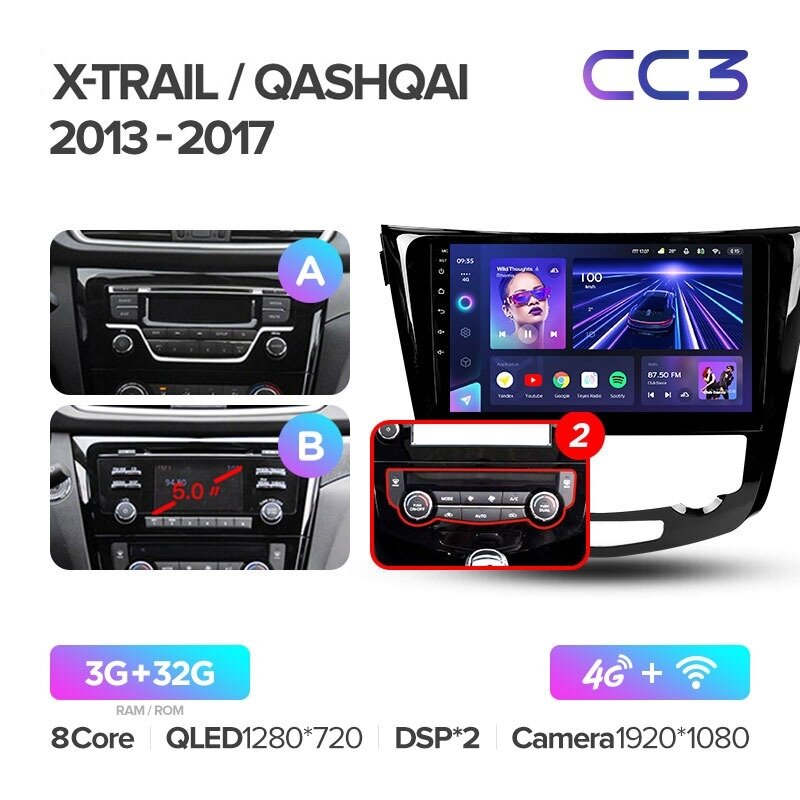 Штатная магнитола Teyes CC3 Nissan X-Trail / Qashqai 3 T32 2013-2017 6+128G, Вариант C, Кондиционер