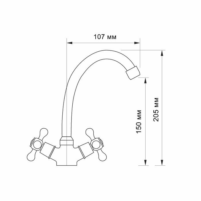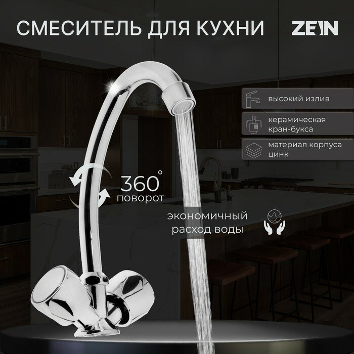 Смеситель для кухни ZEIN Z80102, двухвентильный, кран-букса латунь 1/2", без подводки, хром