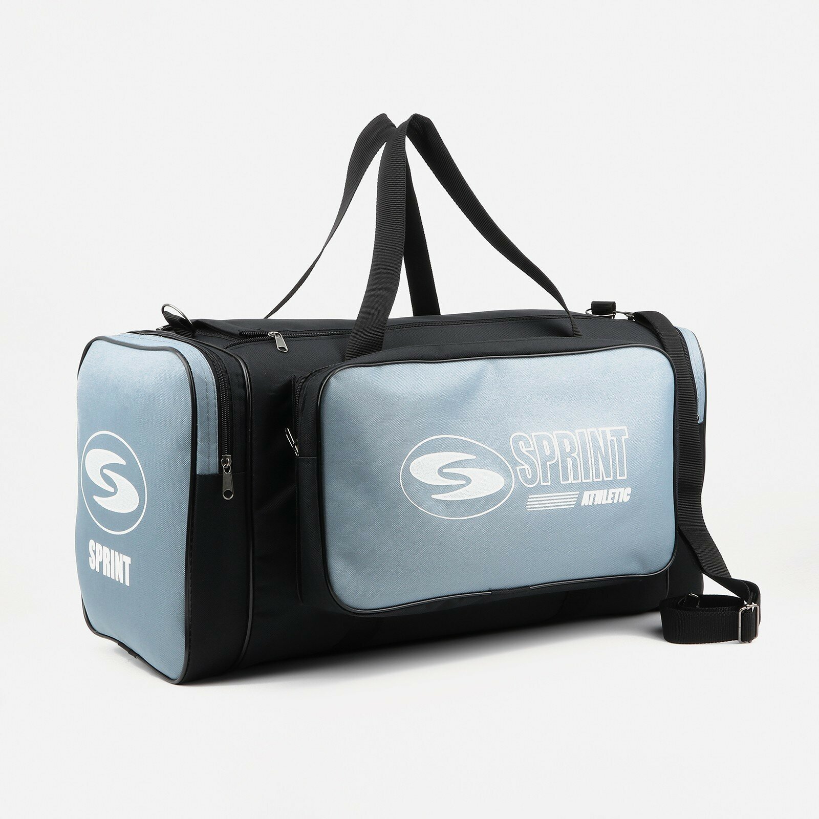 Купить Сумка спортивная на молнии, 3 наружных кармана, длинный ремень, цвет чёрный/серый
