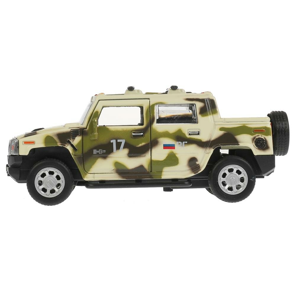 Модель машины Технопарк Hummer H2 пикап, в камуфляже, инерционная, свет, звук HUM2PICKUP-12SLMIL-GN