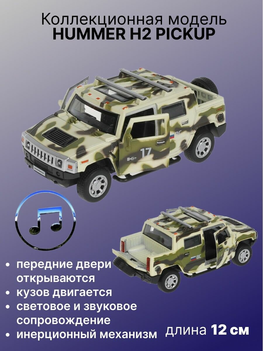 Купить Технопарк Машина Hummer H2 Pickup Камуфляж 12 см свет, звук, металл HUM2PICKUP-12SLMIL-GN с 3 лет
