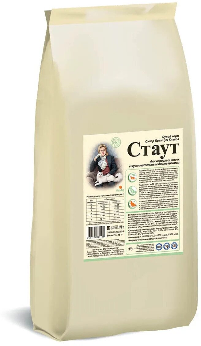 Стаут 15кг сухой для взрослых кошек с чувствительным пищеварением