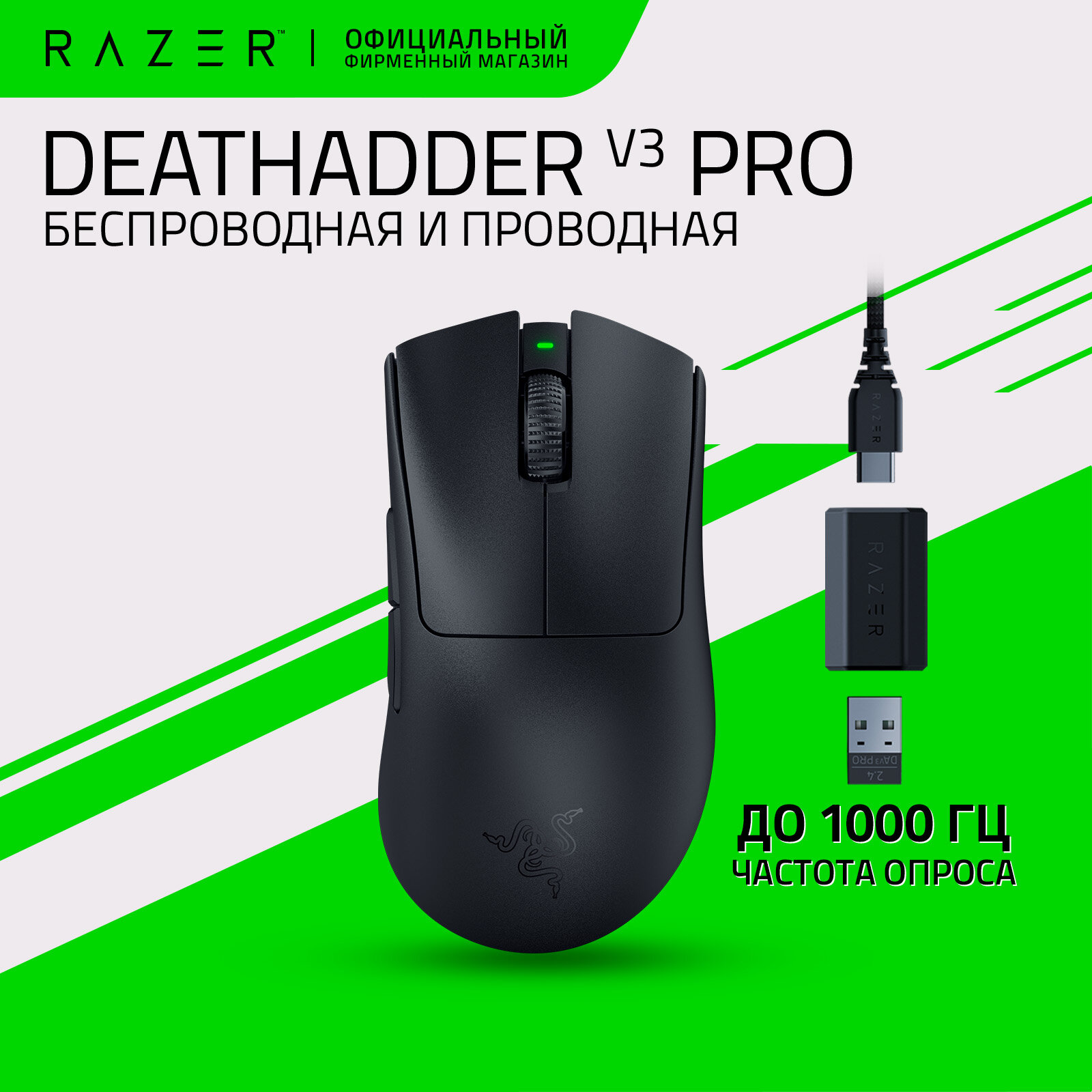 Игровая мышь Razer DeathAdder V3 Pro + 8K Hz HyperPolling Wireless Dongle Bundle (Black) Беспроводная и Проводная, Частота опроса до 8000Гц, 30 000 DPI, 6 кнопок, 63 г