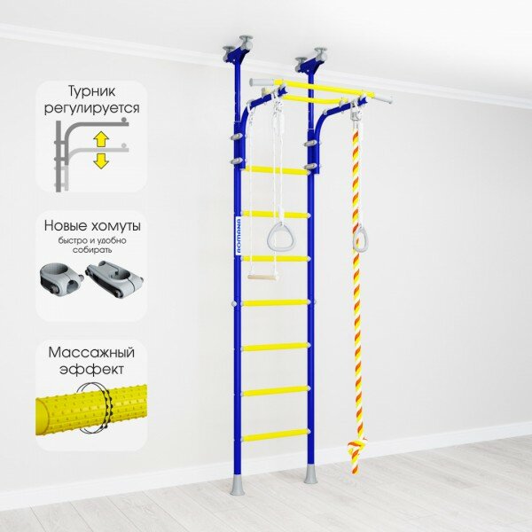 | Подробная комплектация | - шведская стенка; - подвижный турник; - канат; - кольца; - трапеция. |