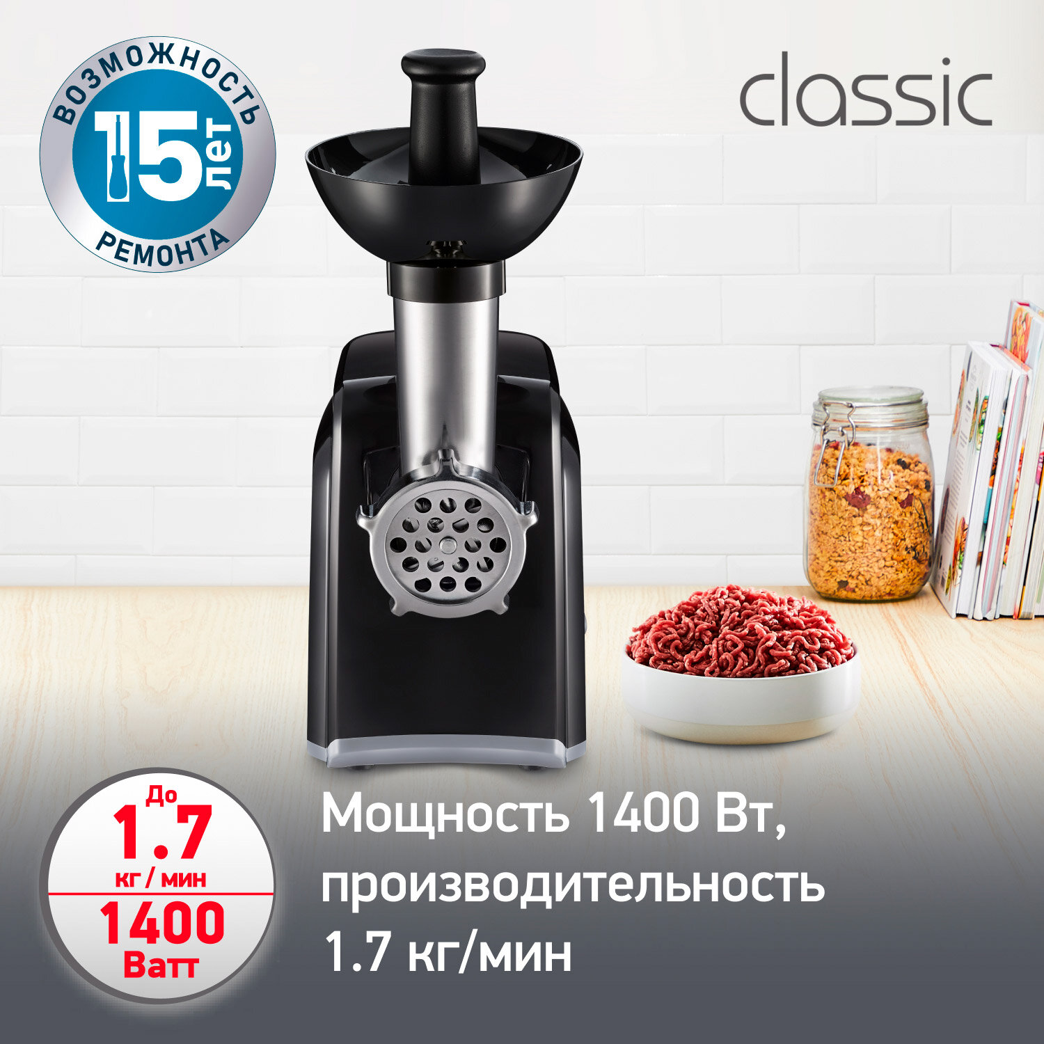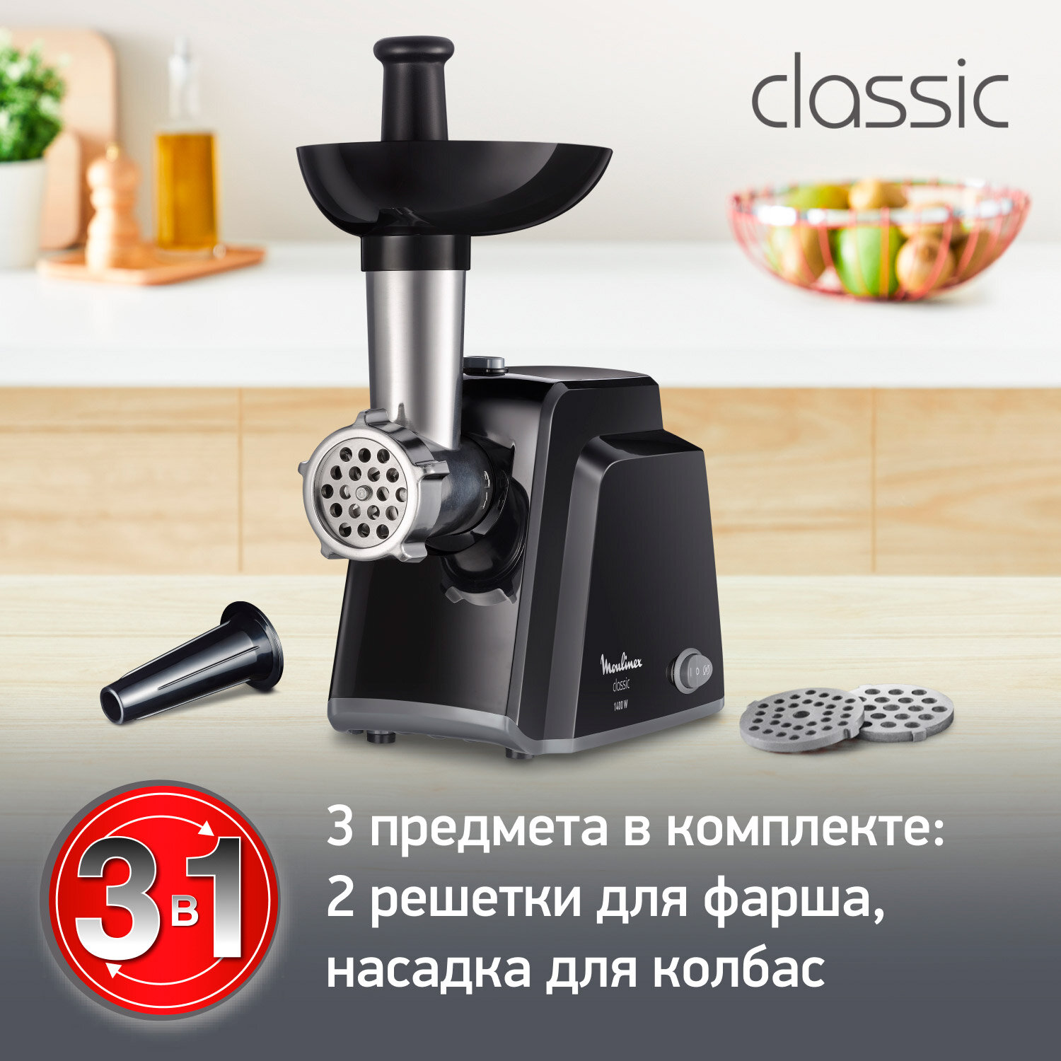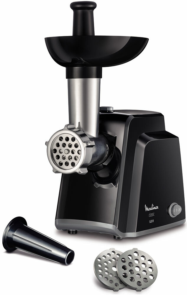 Мясорубка MOULINEX ME105830, 1400 Вт, 1.7 кг/мин, реверс, 3 насадки, чёрная