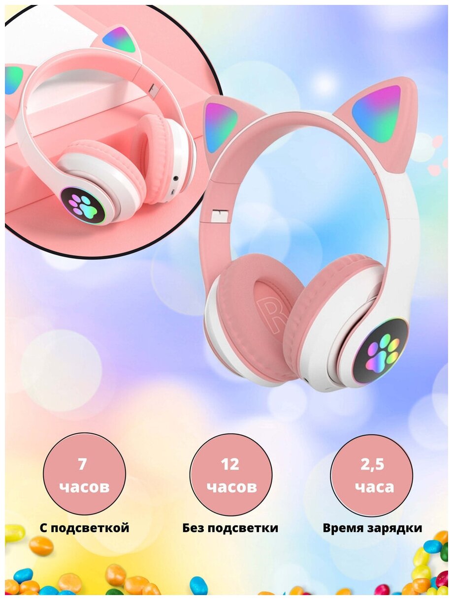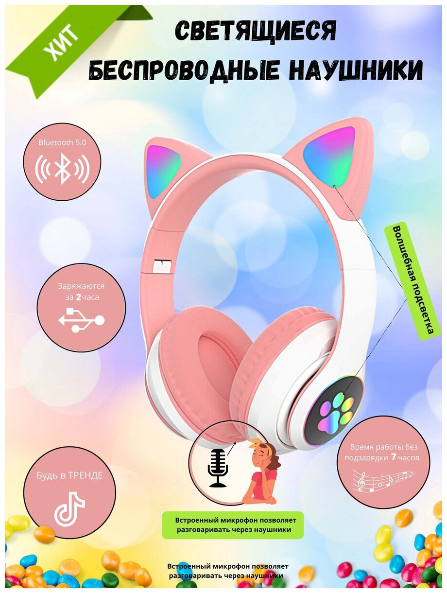 Наушники беспроводные, детские, QuantisTtade, светящиеся, с кошачьими ушками, цвет розовый интересное: