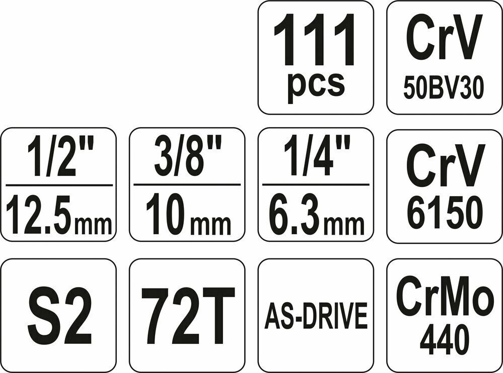 Набор инструментов 111 пр: 1/4, 3/8, 1/2, 6 гр YATO YT-38831 | цена за 1 шт
