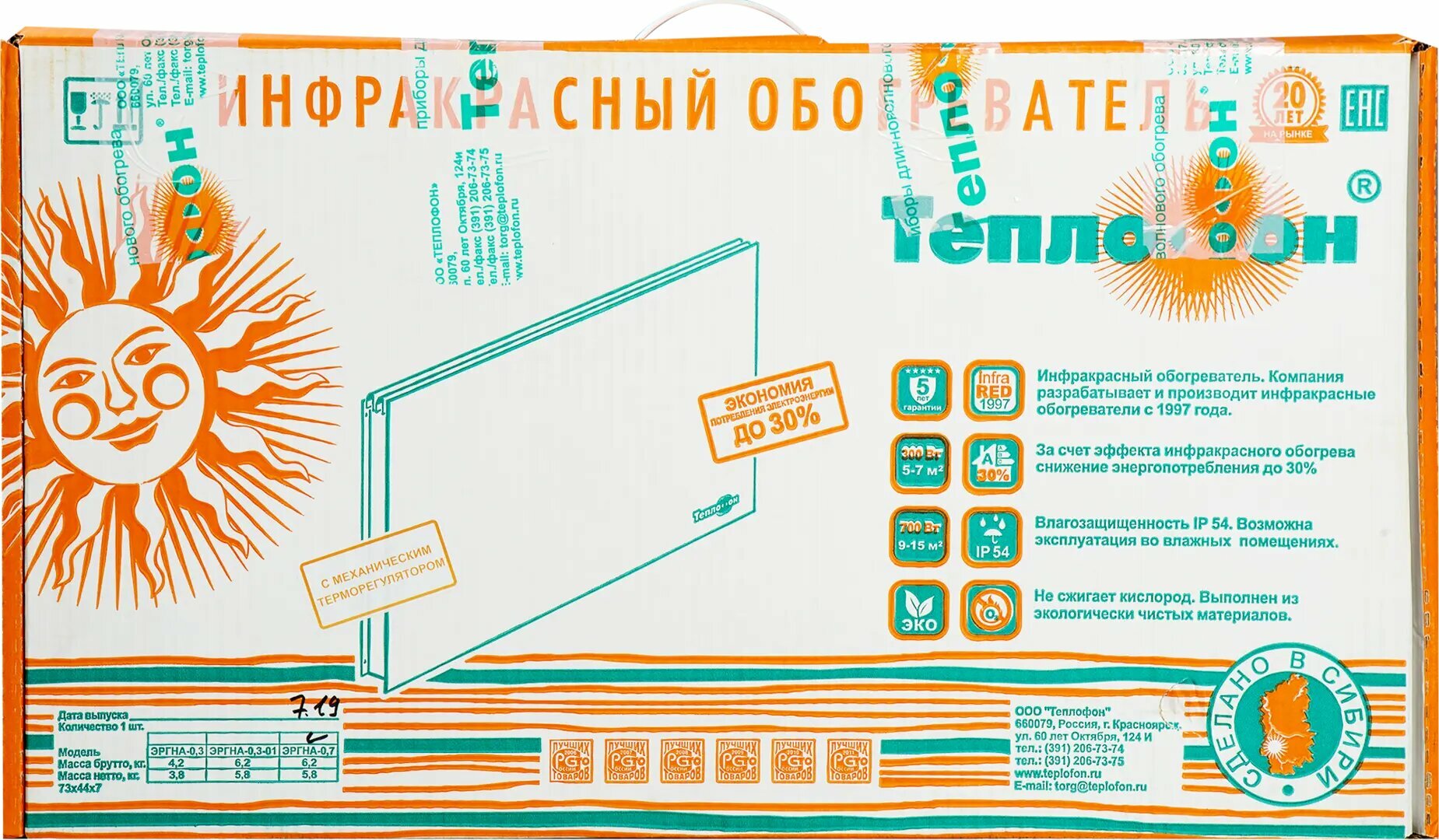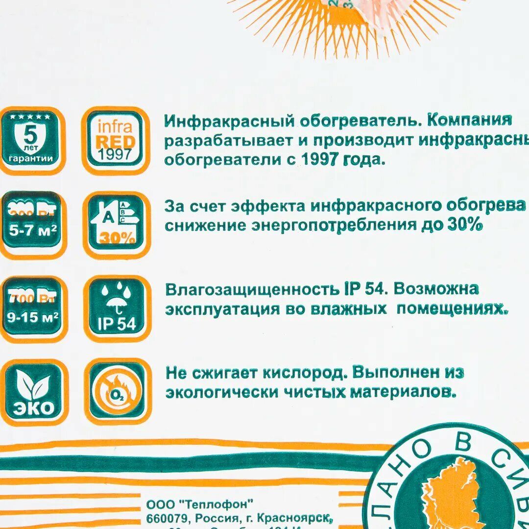 Обогреватель инфракрасный электрический с механическим термостатом Теплофон 700 Вт интересное:
