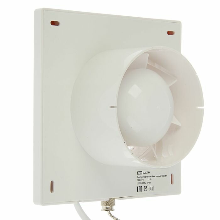 Вентилятор вытяжной настенный, выключатель, TDM Electric, установочный диаметр 100 мм, 15 Вт, 100 м3/час, SQ1807-0013