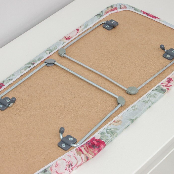 | Минусы: | На фотографиях в основании данной доски - металлическая решетка, которая очень удобна при работе с отпаривателем. По факту - кусок ДСП. Ножки, крепления настолько плохо держатся, что отвалились уже в процессе транспортировки. |