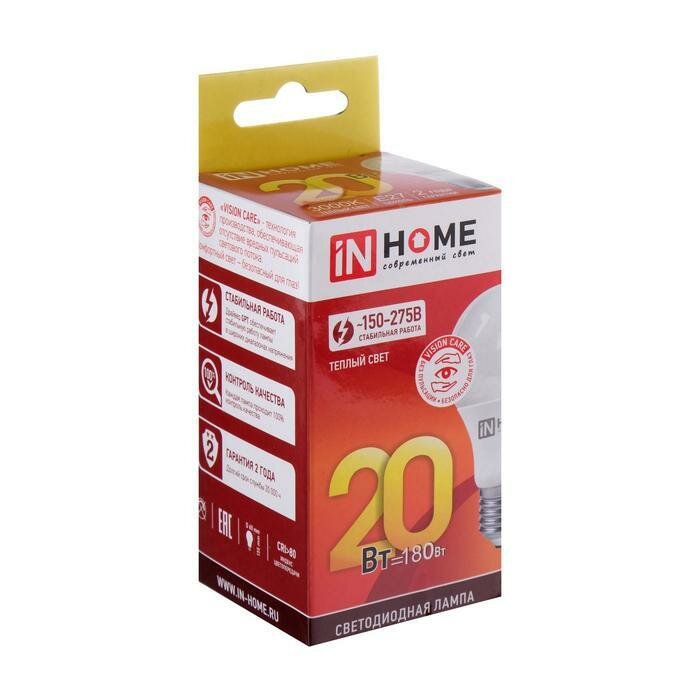 Лампа светодиодная IN HOME LED-A60-VC (4690612020297), E27, A60, 20 Вт, 3000 К