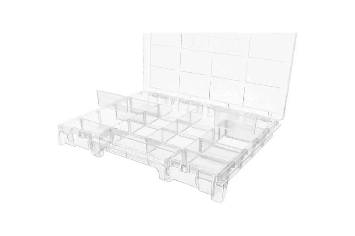 | Дополнительная информация | усиленные стенки, длинное отделение для ручного инструмента, прочная прозрачная крышка позволяет увидеть наполнение органайзера, профессиональный органайзер: 12 съемных лотков 2х размеров, металлические замки обеспечивают надежную фиксацию |