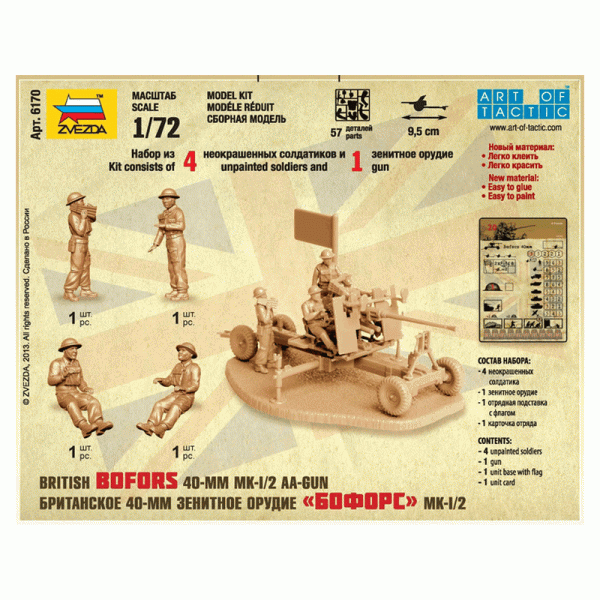 Сборная модель ZVEZDA "Британское 40-мм зенитное "Бофорс" Мк-1/2" 6170