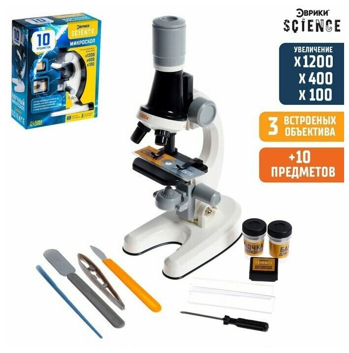 Ниже Вы можете прочитать отзывы на Микроскоп школьный с набором для опытов, микроскоп Юный биолог, кратность увеличение в 100х, 400х, 1200х, ознакомится с подробными характеристиками, посмотреть интересные обзоры и фотографии на Микроскоп школьный с набором для опытов, микроскоп Юный биолог, кратность увеличение в 100х, 400х, 1200х.