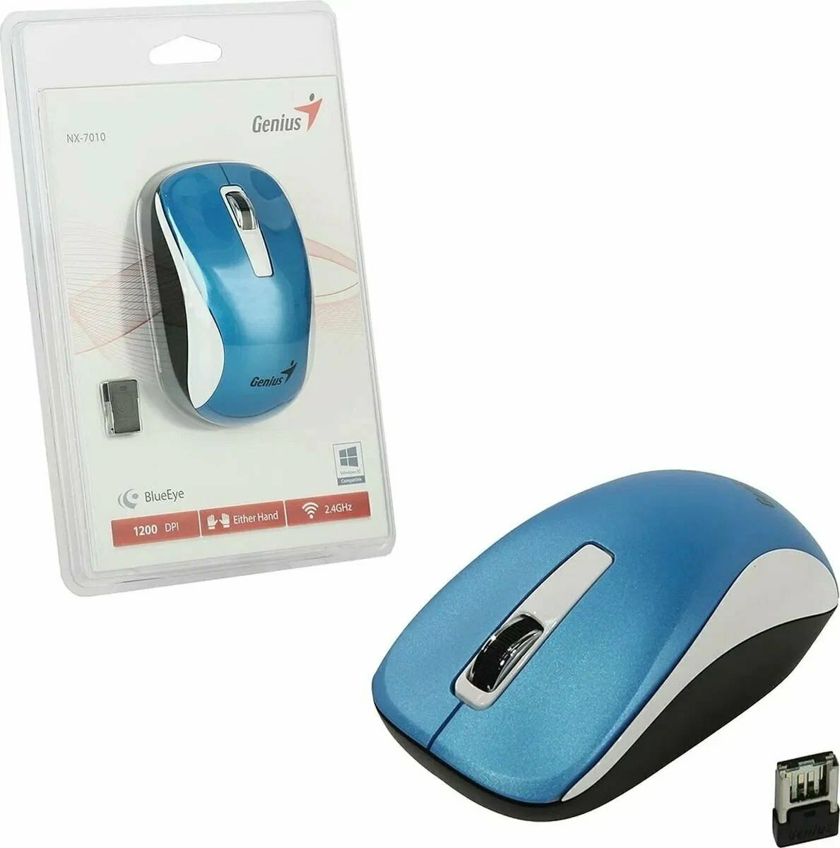 Мышь беспроводная Genius NX-7010, SmartGenius: 800, 1200, 1600 DPI, микроприемник USB, 3 кнопки, для правой/левой руки. Сенсор Blu (31030114111)