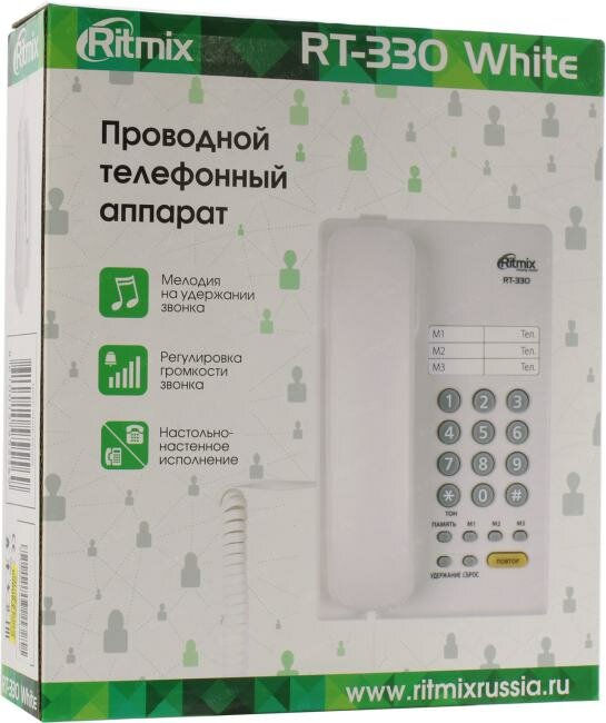 RITMIX Проводной телефон Ritmix RT-330, мелодия на удержании звонка, Hi-Low, белый