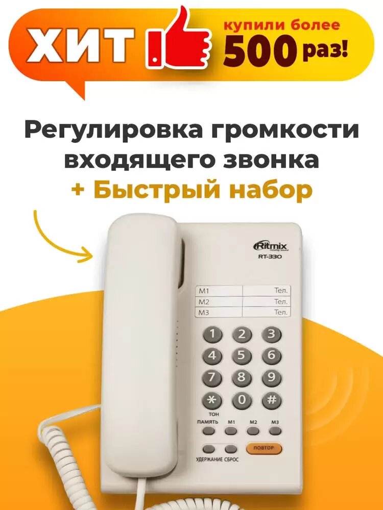 Проводной телефон Ritmix RT-330, мелодия на удержании звонка, Hi-Low, черный