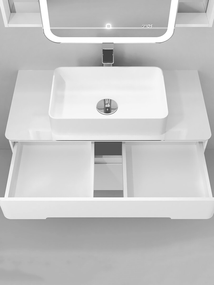 Подвесная тумба под раковину Jorno Bosko 100, со стеклянной столешницей, цвет белый