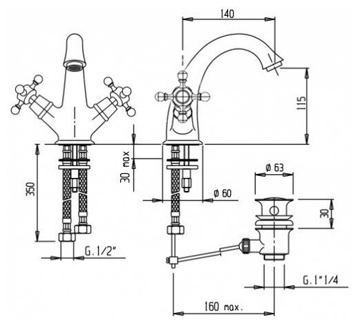 GOLF-LS1-02 Смеситель на раковину с донным клапаном бронза, ручки бронза