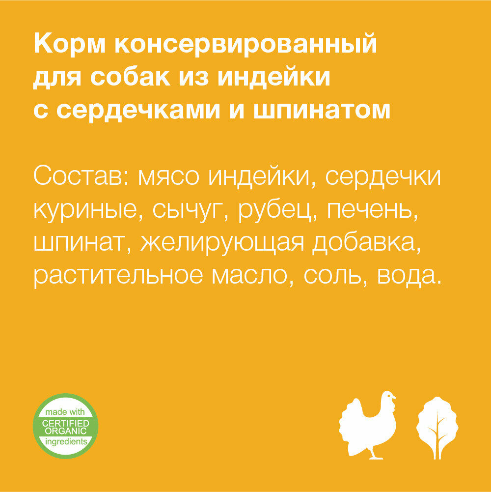 Купить ORGANIX для взрослых собак с индейкой, сердечками и шпинатом (400 гр х 9 шт)
