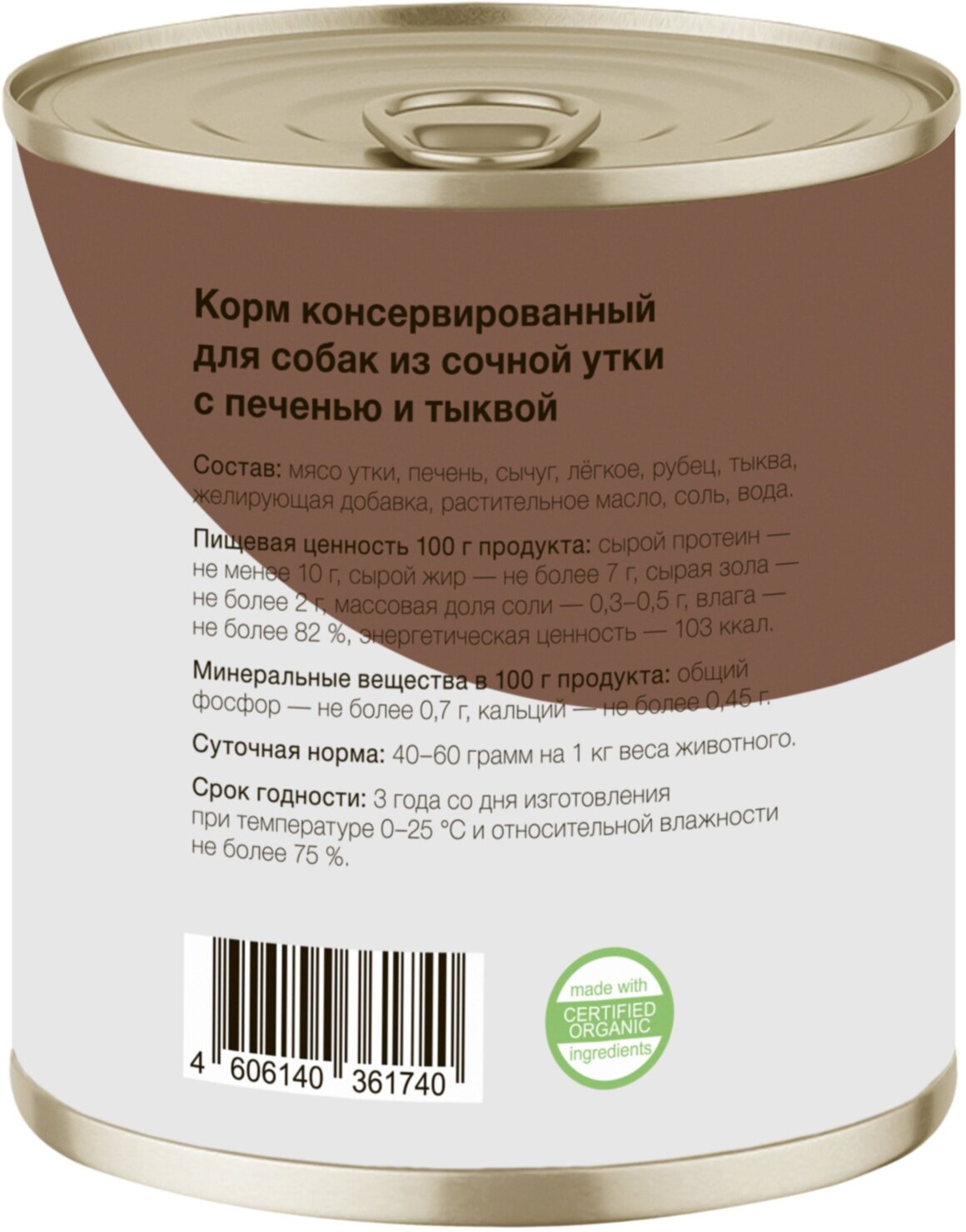 Консервы для собак Сочная утка с печенью и тыквой 0,4 кг