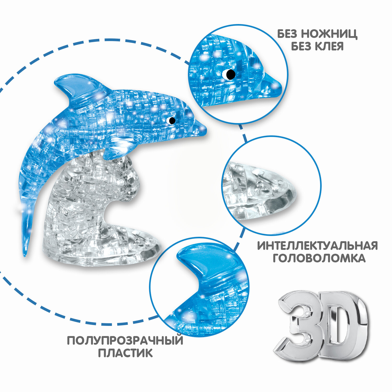 Пазл 3D Bondibon Магия Кристаллов "дельфин", 95 деталей, голубой, прозрачный (ВВ5223)