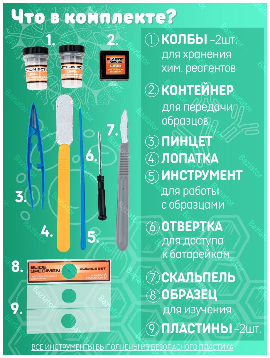 Микроскоп школьный для детей Scientific microscope с подсветкой, микроскоп детский с набором для опытов, для исследований, микроскопы для школьников интересное: