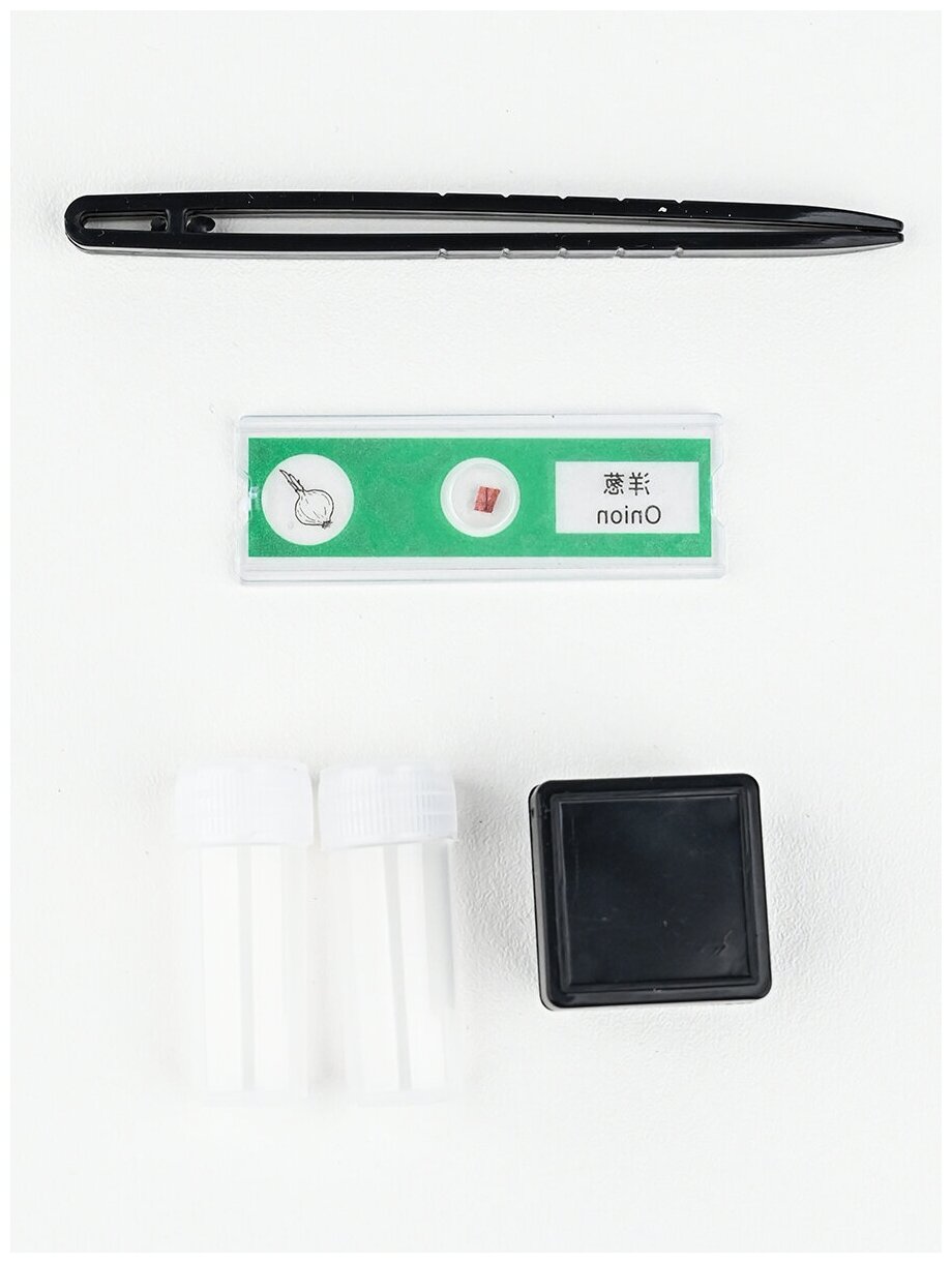 | Комплектация | Набор для опытов включает в себя: образец для исследования, 2 контейнера, 2 предметных стекла, пинцет, шпатель, скальпель, рассекающая игла, бокс |