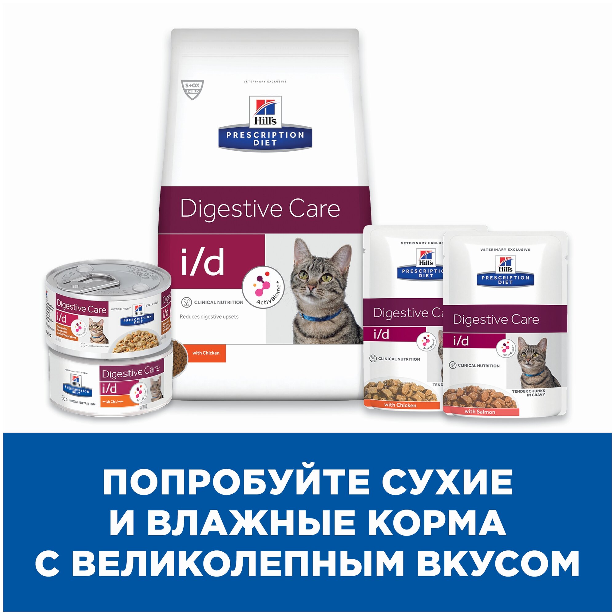 Влажный диетический корм для кошек Hill's Prescription Diet i/d Digestive Care при расстройствах пищеварения, жкт, с курицей, 12 шт. х 85 г (кусочки в соусе)