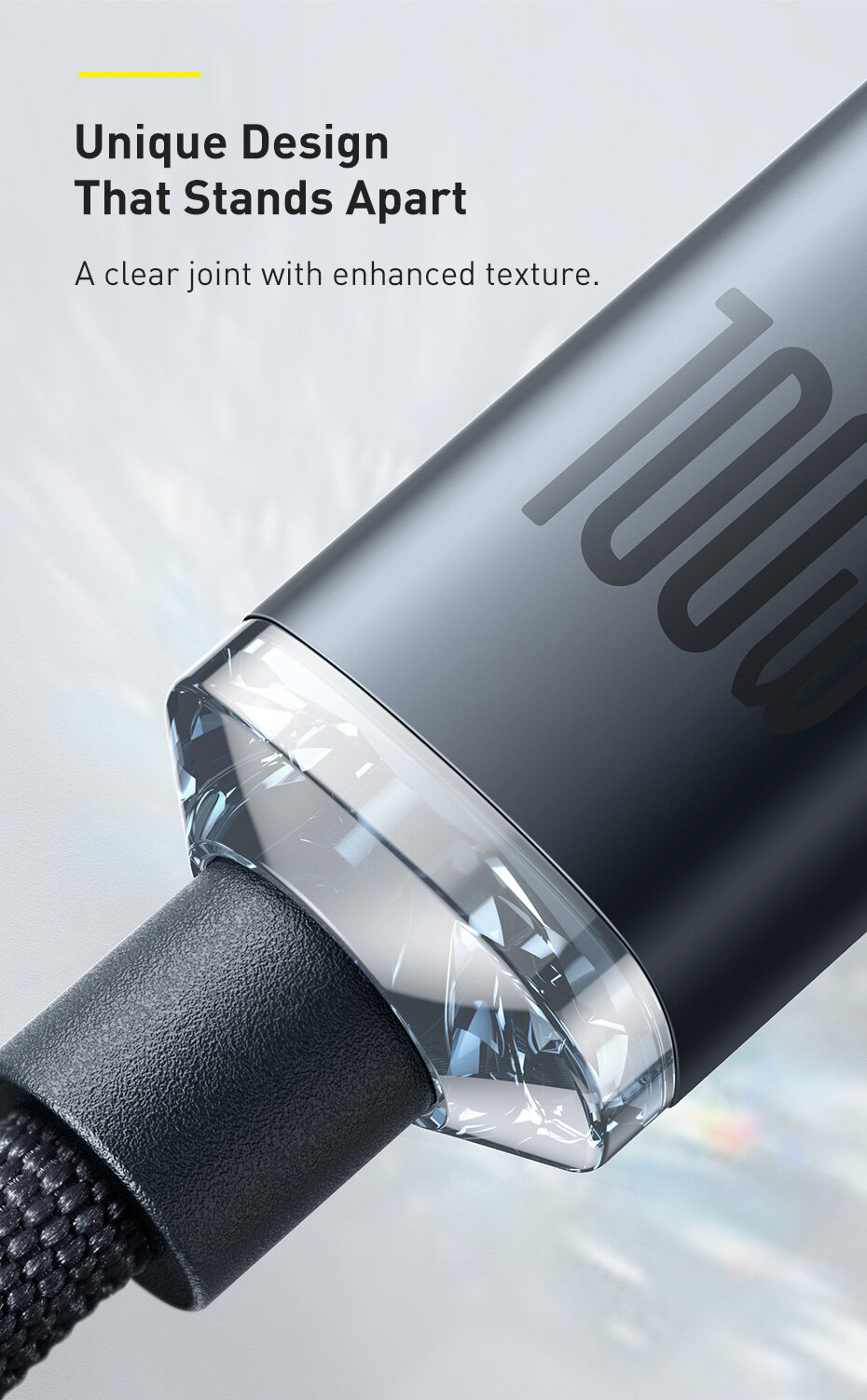 Аксессуар Baseus Crystal Shine Series USB Type-C - USB Type-C 100W 1.2m Black CAJY000601