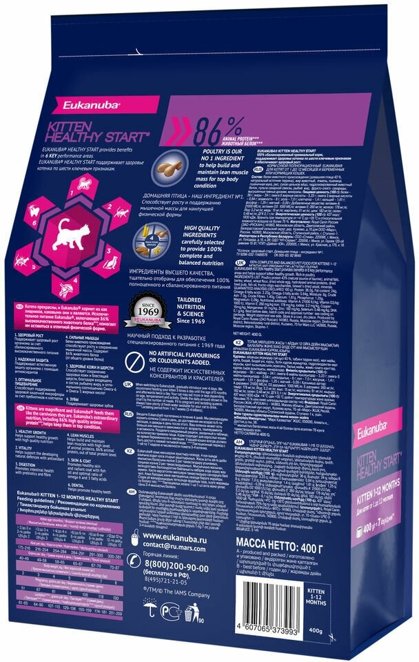 EUKANUBA KITTEN HEALTHY START 2кг сухой корм для котят с домашней птицей 5шт