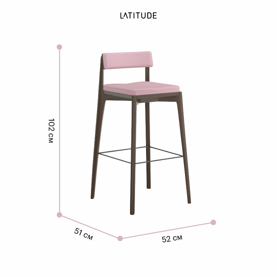 Стул барный Latitude Aska для бара мягкий, рогожка, массив ясеня, орех/розовый, ASKBCHVNGBSKPK