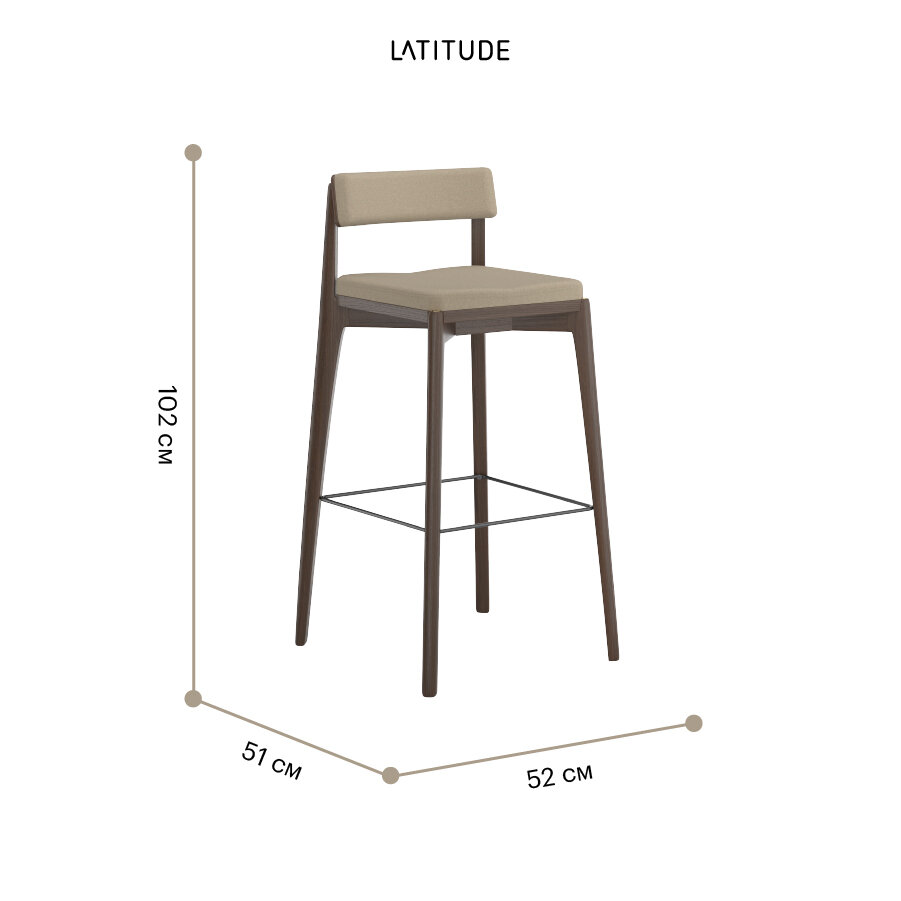 Стул барный Latitude Aska для бара мягкий, рогожка, массив ясеня, орех/бежевый, ASKBCHVNGBSKBG