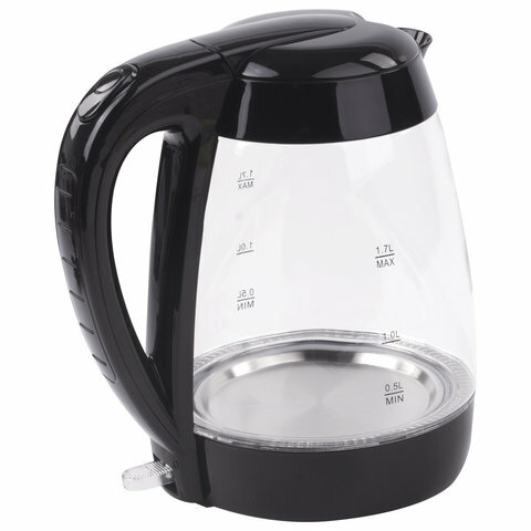 Чайник стеклянный с подсветкой SONNEN KT-200BK, 1,7 л, 2200 Вт, закрытый нагревательный элемент, черный