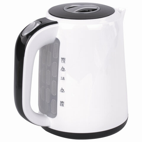 Чайник SONNEN KT-002B, 1,7 л, 2200 Вт, закрытый нагревательный элемент, пластик, белый/черный, 454994