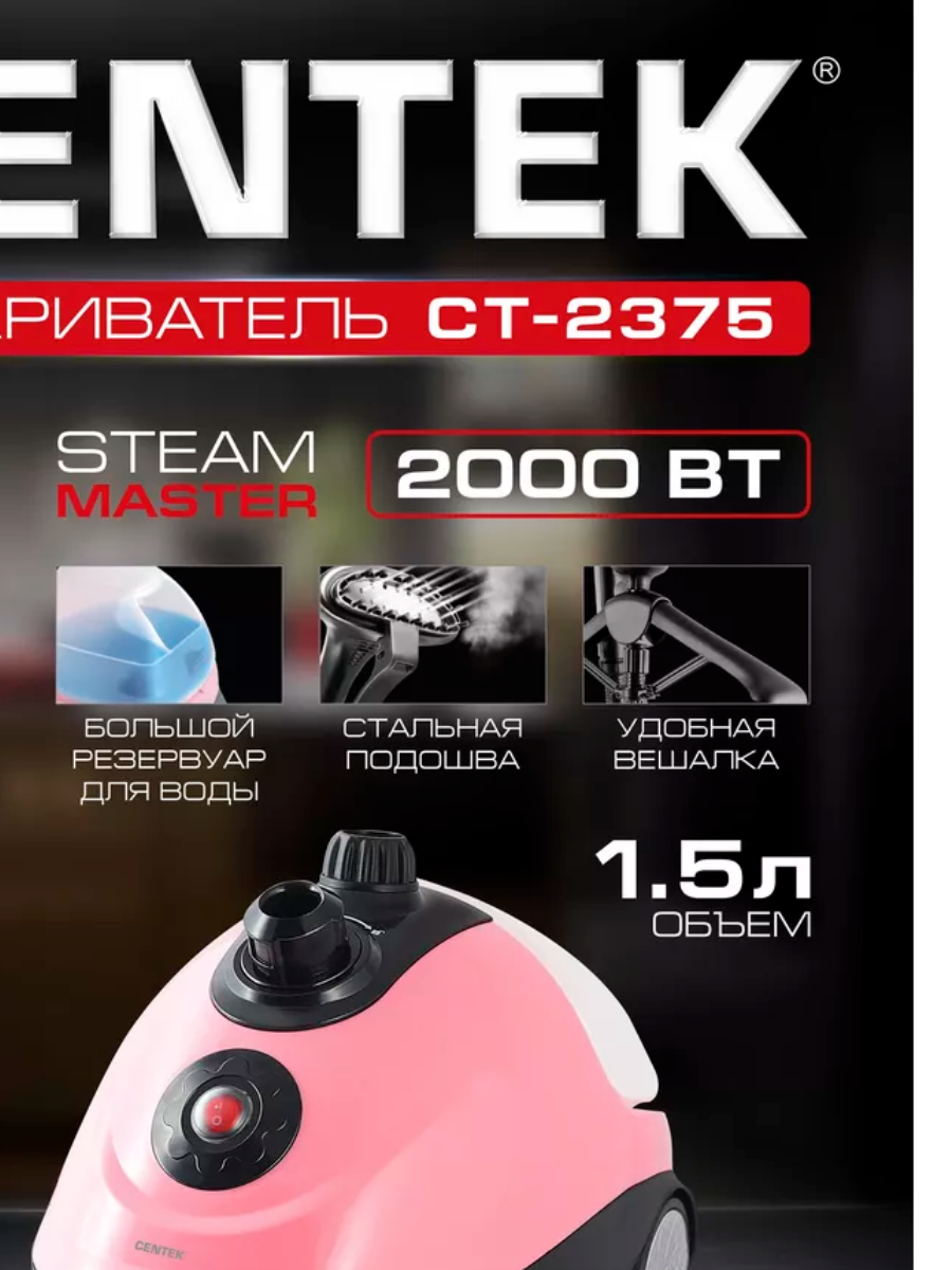 Отпариватель Centek CT-2375 (розовый + черн) 2000Вт, 1.5л, 40г/мин, складная вешалка, сталь. подошва