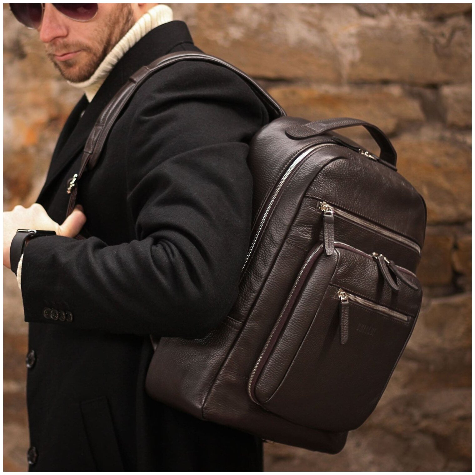Городской мужской рюкзак из кожи BRIALDI Explorer relief brown (коричневый) кожаный стильный ранец для ноутбука 14 дюймов или документов A4