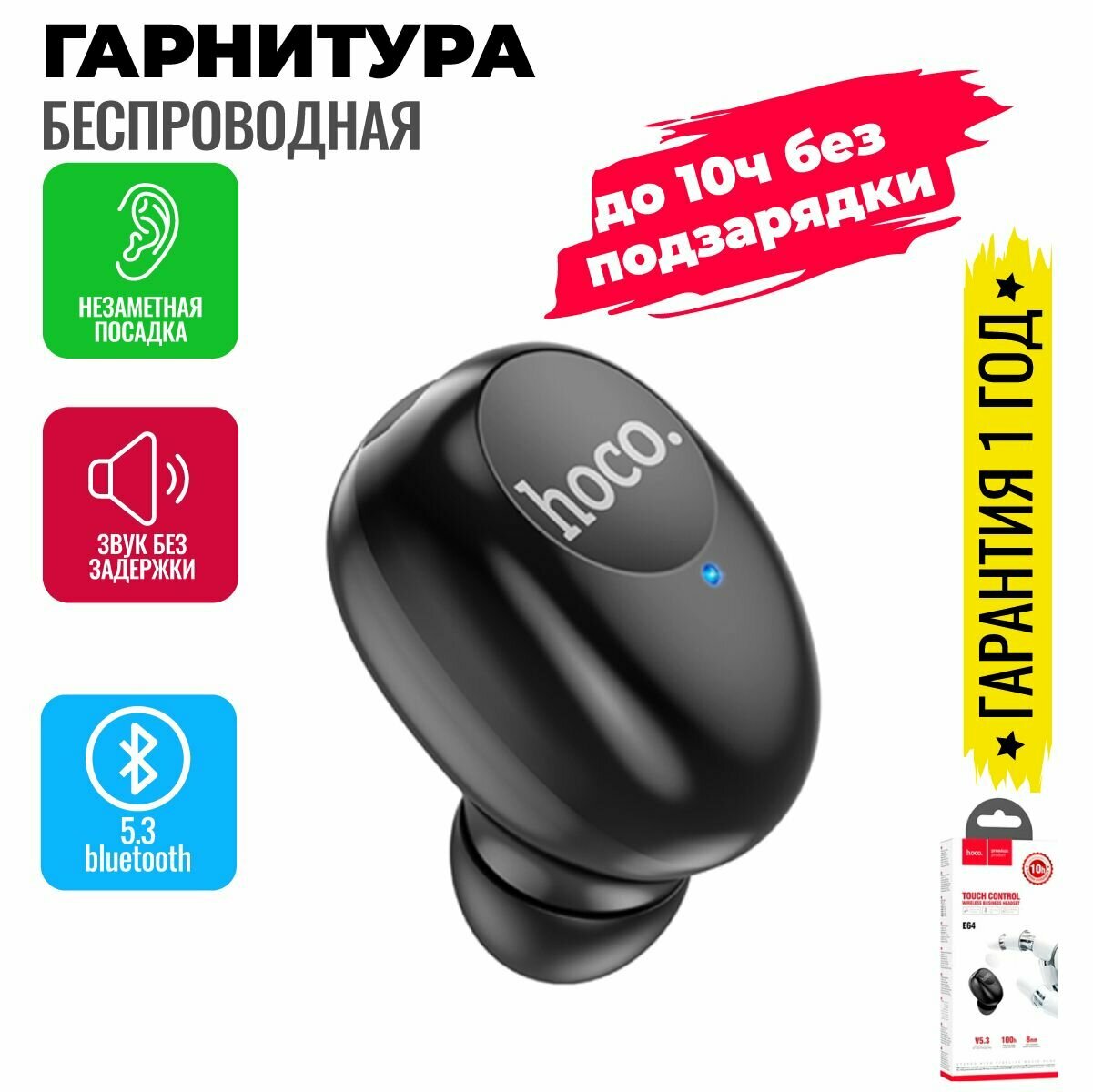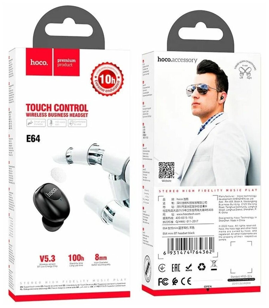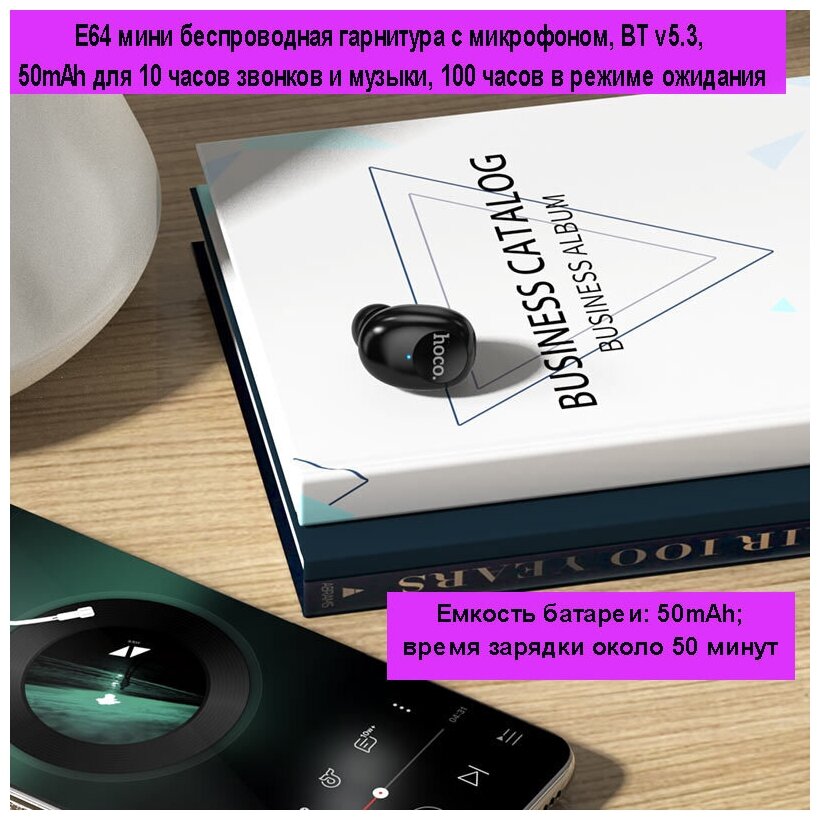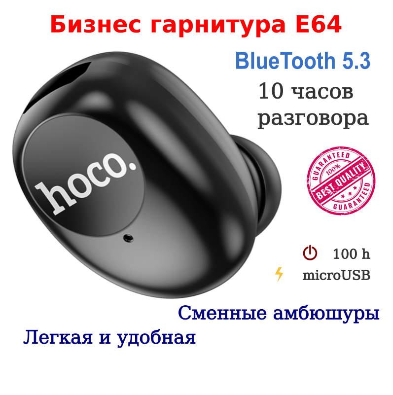 СохранитьBT гарнитура Hoco, E64 (универсальная для всех телефонов), черный интересное:
